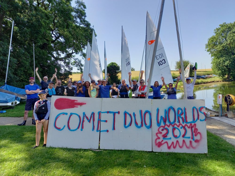 On Saturday 17 July 2021, we welcomed 12 Comet Duos to the latest Cransley Worlds.  With one visitor (Nigel Ford from Solihull (93)), and five international club members from Wales, it had the feeling of a universal event.
